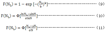 9.2在未知試驗(yàn)齒輪的壽命分布函數(shù)時(shí),一般采用二參數(shù)威布爾分布、對(duì)數(shù)正態(tài)分布或正態(tài)分布進(jìn)行分布檢驗(yàn),確定分布類型。三種分布函數(shù)分別為:
