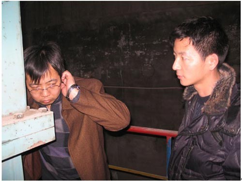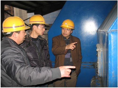 (南高齒質(zhì)量萬里行人員在現(xiàn)場傾聽減速機運行時是否有異常噪音)