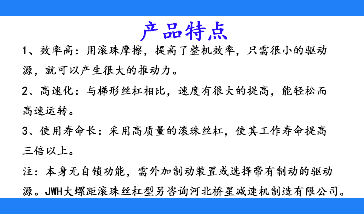 ②JWH大螺距滾珠絲杠型另咨詢。