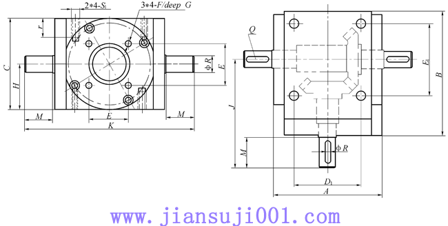 | 2 | 傳動(dòng)比:N或L | N:普通速比,可省略不標(biāo), 每輸入1圈升降1㎜ | L:慢速比,需標(biāo)注, 每輸入1圈升降0.25㎜ |