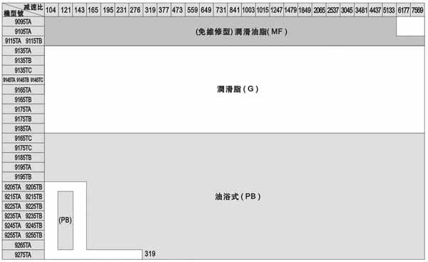 因為下表所列各型號潤滑油均已在出廠前為您裝潢,故您可直接使用,而不必再加油。