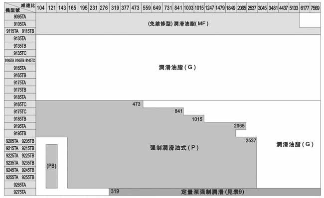 TP:定量泵強制潤滑(見表9)