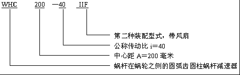 ![]() ![]() WH系列圓弧齒圓柱蝸輪減速機(jī)型號說明及標(biāo)記示例