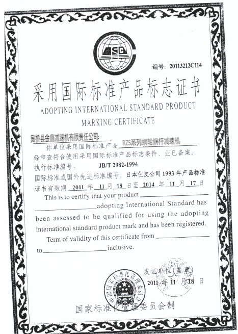 型號: RZS系列產(chǎn)品質(zhì)量證書;